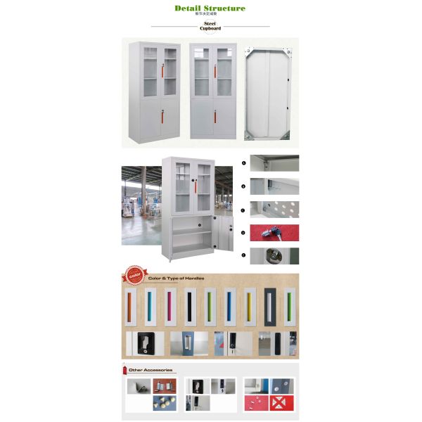 KD Steel cupboard with class and steel door, swing/sliding open,white color/green handle/directly offer
