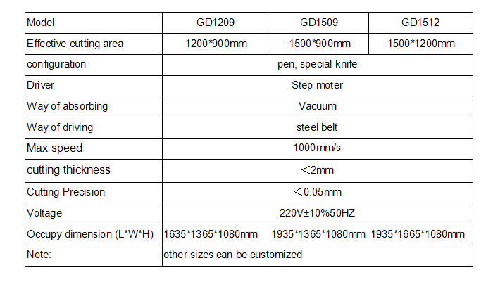 GD cutter machine with high speed aims at requirement of high precision in the market. Taking imported steel belt, with the characteristics of high precision, fast speed, good stability, easy to use, which is compatible with CAD software and is widely used to high-precision drawing,it is welcomed by customers.