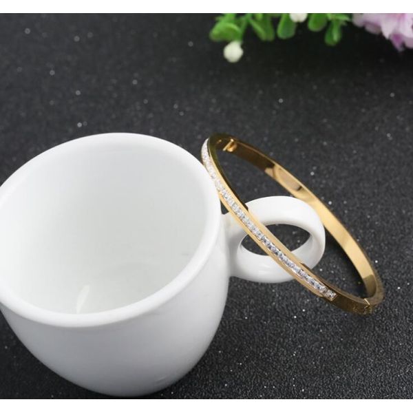 Quality High Polish Stainless Steel Nail Bangle Gold Color New Style Rhinestone Zircon Rose Gold Bangle wholesale