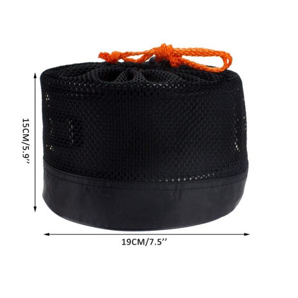 3. Portable: Collapsible handles on pot and pans can be folded to save space. All the objects in this cooking set can be stored together in a mesh bag for convenient carry.