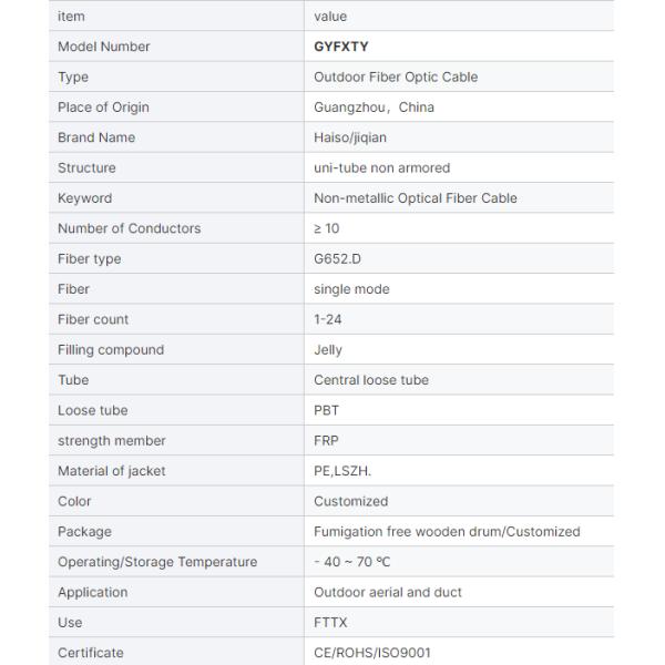 The fibers, 200/250um, are positioned in a loose tube made of a high modulus plastic.The tubes are filled with a water-resistant filling compound. Over the tube. water-blockingmaterial is applied to keep the cable watertight. Two parallel Fiber Reinforced Plastics(FRP) are placed at the two side. The cable is completed with a polyethylene(PE) sheath.