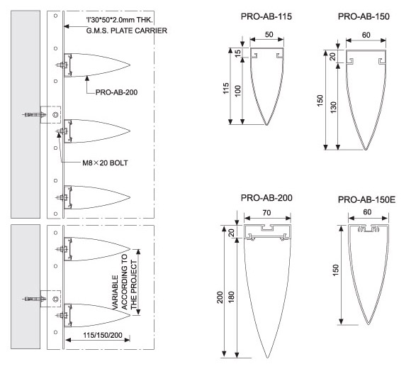 01) aluminum panel aerobrise louver blades is made up of 0.6~0.8mm thick aluminum panel,consisting of curved fascia, supporting fascia holder,end cap. Width can be 100,150,200. the aluminum panel aerobrise can be solid or perforated according to request. Maximum length 3000mm. it can be Akzon Nobel powder coated, PVDF spraying finished,which can last for 10-30 years exterior facades. Various RAL colors and woodgrain colors are available for choice.