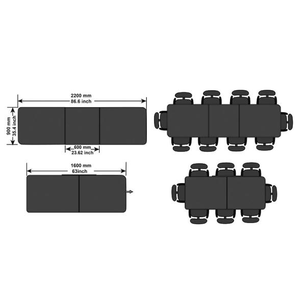 | Product Size: | 1600mm W (2200 mm when extended) x 900mmD x 760mmH ( with 1* 600 mm middle extension leaf) |