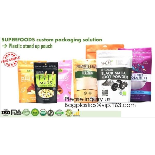 Quality Pack Packaging Reusable Aluminium Foil Zip Lock Stand Up Food Pouches Bags with Tear Notch for Food Storage, bagease wholesale