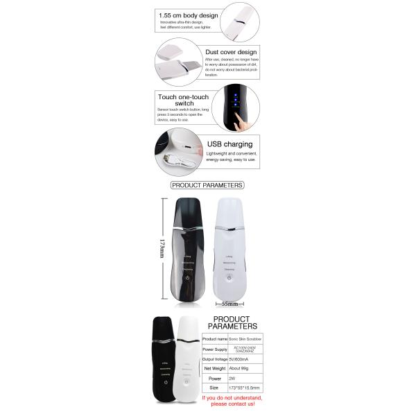 As you know, manually clean your face with the facial cleaner can only clean the dirt upon your face, the deeper and inner pores dirt are not easily to clear out, the ultrasonic face scrubber solve this through its high frequency vibration, atomizes and detaches dirt from the pores, so that follow-up skin care process nutrition can be better absorbed.
