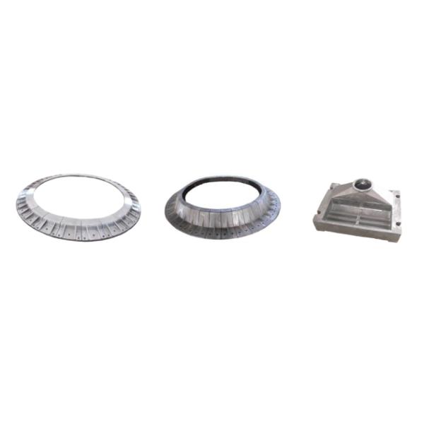 Kiln inlet and out let casting are very important spare parts for kiln in cement prodcution. During kiln working, the spare parts for kiln are under high temperature. The kiln out let and inlet plate are indispensable thermal engineering auxiliary equipment of the rotary kiln system. Under normal production conditions of the kiln system, the clinker temperature is generally between 1300 ℃ and 1400 ℃. The guard plate is washed by high temperature clinker particles, plus Casting materials fall off and other reasons are easily deformed and burned, which leads to serious deformation of the kiln shell.