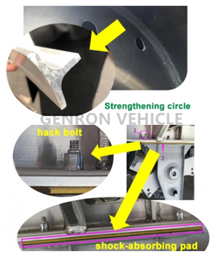 National patented T-shaped beam, bearing capacity and torsion resistance are 3-5times that of traditional L-shaped longitudinal beam.ASME standard aluminum alloy tank body, three prismatic reinforcement ring,stress absorption and impact resistance.