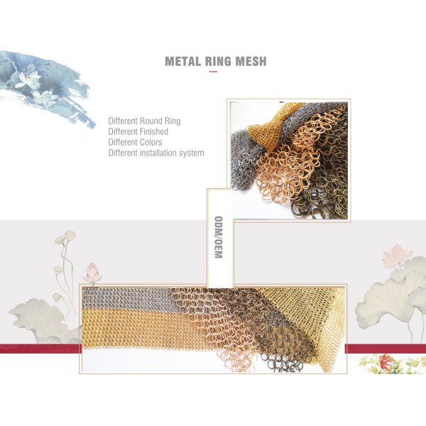 METAL RING MESH IS Widely used for exterior design, interior design, sun protection, facades, security areas, exhibition design, shop fitting, door curtain, staircase walls - railings, art objects.