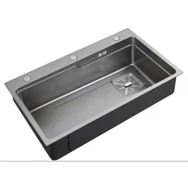 Create a highly functional kitchen workstation with this Prolific 780*480*220mm Topmount Single-Bowl Kitchen Sink with Accessories. This innovative stainless-steel sink features three graduated ledges in the basin, so you can place the bamboo cutting board, colander, and wash bin exactly where you want them for maximum efficiency as you work. The sink comes with all five accessories included, just as wood cutting board and its shelf, drainers, small bowl sink.
