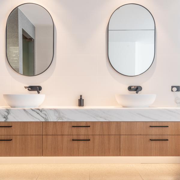 Luxury Hotel Modern Design Mirror Bathroom Vanity Light Wood Grain Floating Bathroom Vanity Cabinet