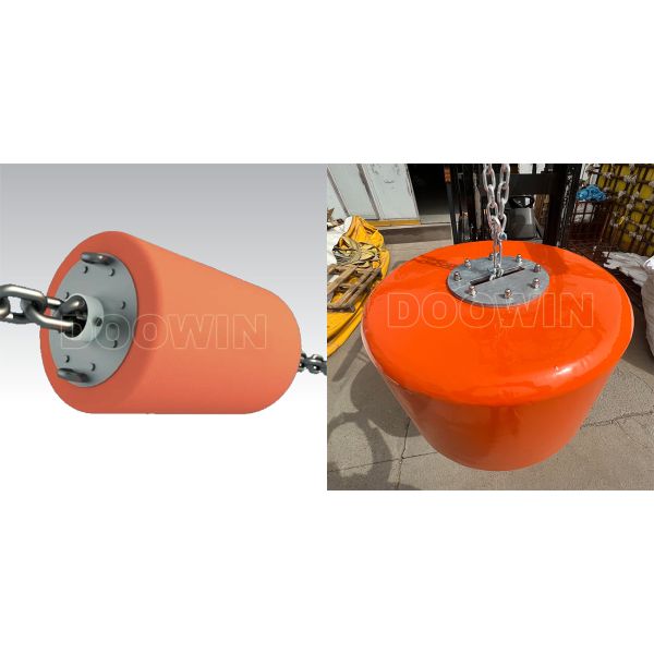 The cylindrical mooring buoy is one kind of representative mooring buoy. The cylindrical mooring buoys can be supplied in chain-through type, or equipped with pad-eye, crucifix, quick release hook, and maker or navigation equipment. Other varieties of end fittings are available to suit every case application. All end fittings are made of galvanized or painted steel to resist seawater corrosion.